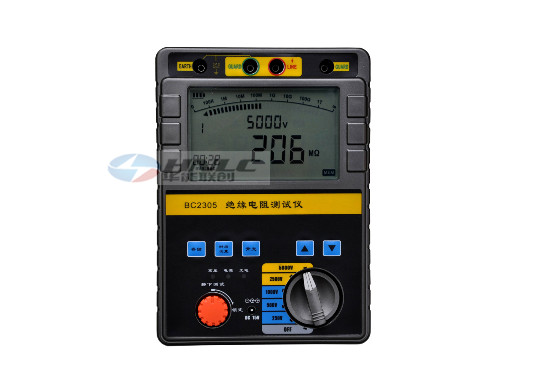 1、絕緣電阻測試儀有多種電壓輸出選擇BC2000(2500V/5000V)、BC2010(500V、1000V、2500V、5000V),測量電阻量程范圍可達0~200GΩ,電阻量程范圍可自動轉換,并有相應的指示